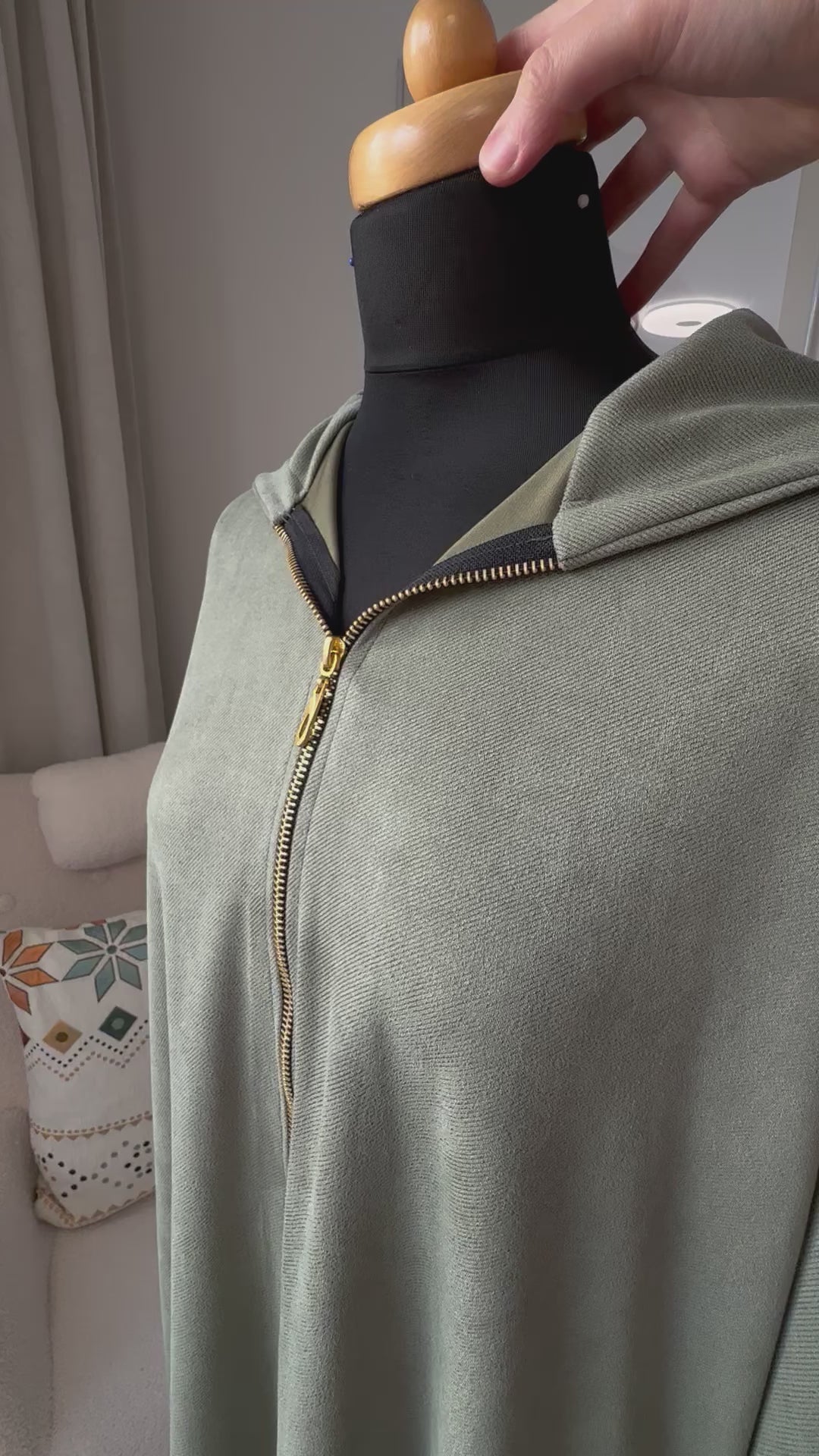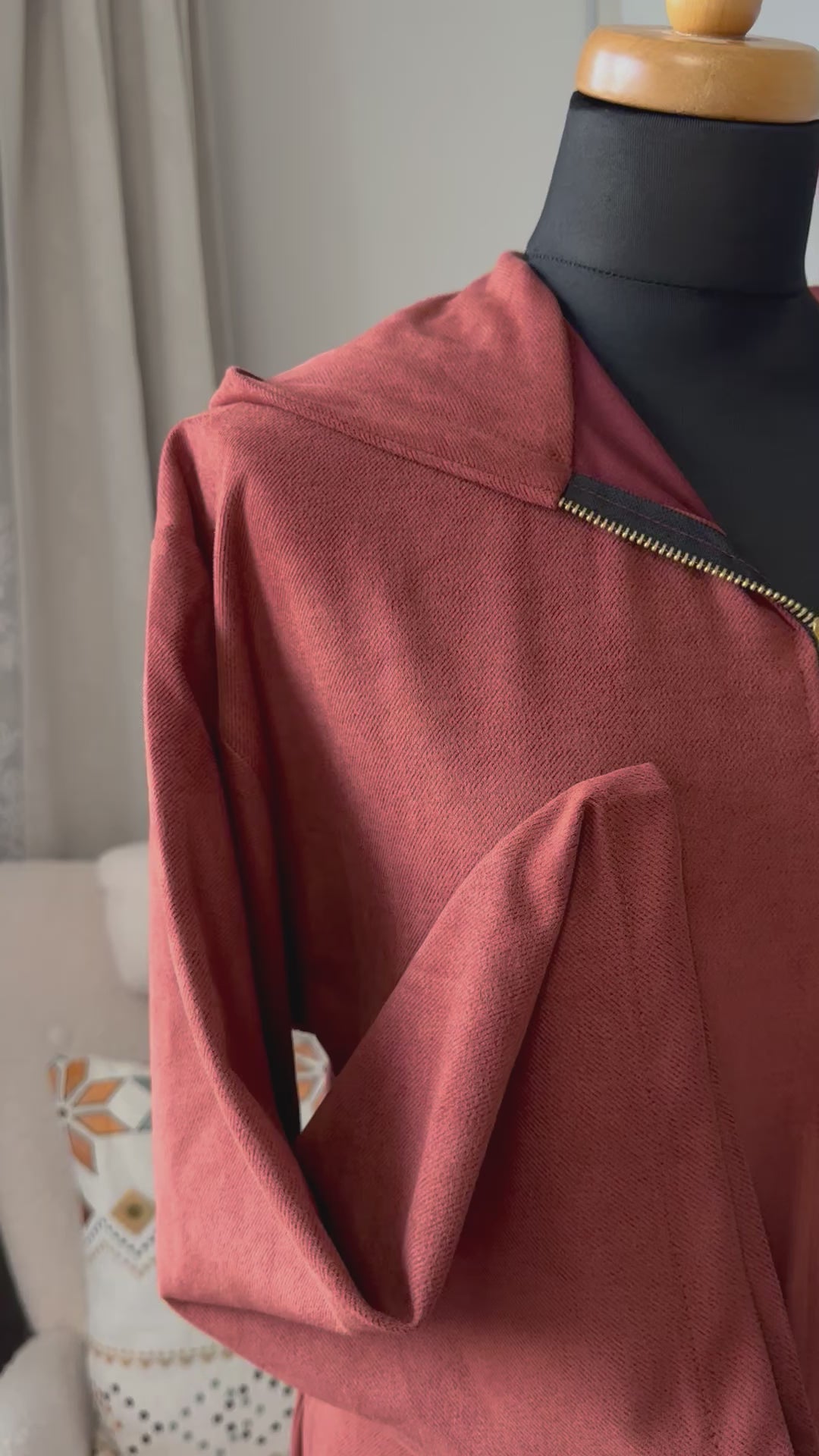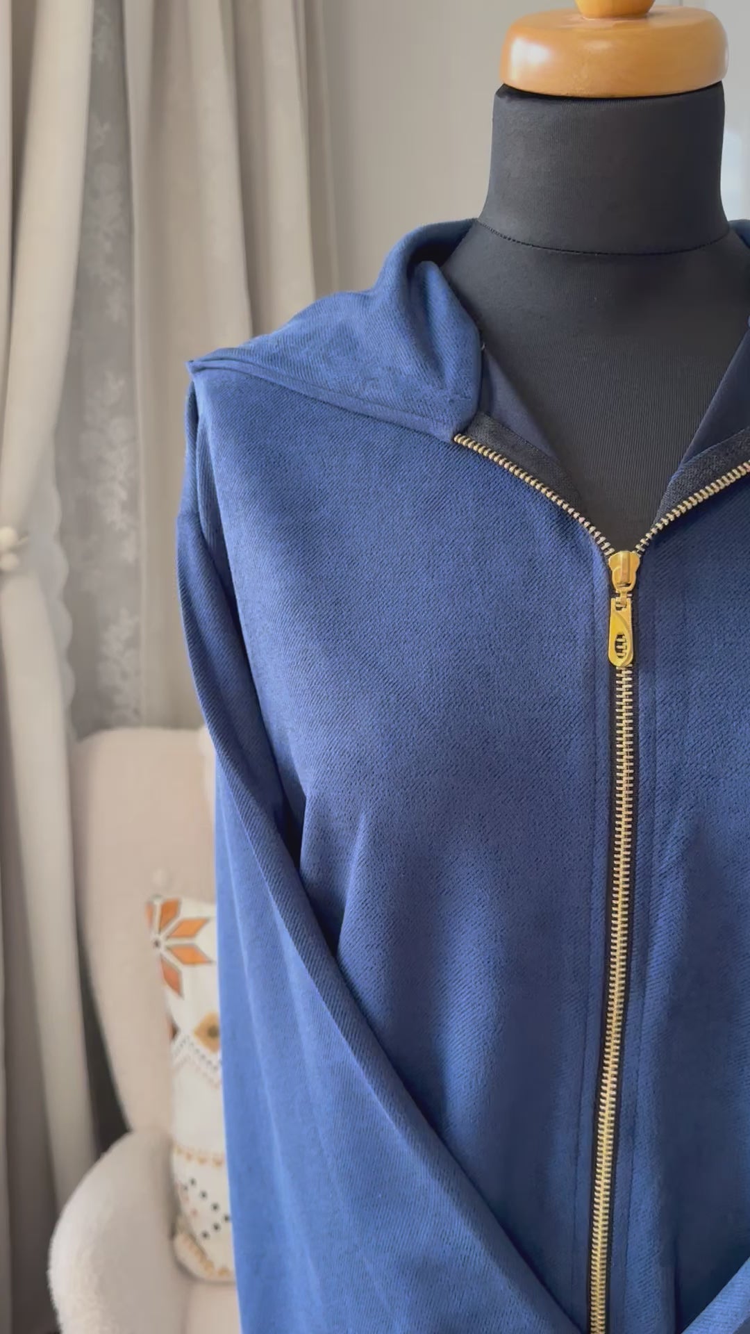 Jellaba Amina aus Faux-Denim vereint Komfort und Stil in einem modernen Look. Der weiche, samtähnliche Stoff in warmen Farben sorgt für ein edles Erscheinungsbild und ein angenehmes Tragegefühl.